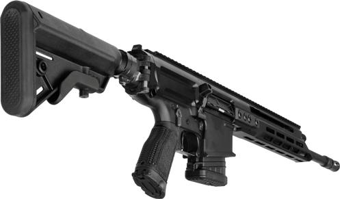| Hinweis! Einige Abbildungen zeigen die Waffe in kürzerer Laufläge! Das DMR ist eine Vollmetallwaffe mit einem Gesamtgewicht unter 4 kg und bringt eine Präzisionsleistung im Sub-MOA Bereich! Der in sechs Schritten um 82 mm verlängerbare Schaft lässt sich zusammenklappen um die Transportfähigkeit der Waffe zu erhöhen. Der vorne liegende Spannschieber kann werkzeuglos von rechts auf links umgebaut werden und dient auch als Schließhilfe. Die M-Lock Schlitze auf 3, 6 und 9 Uhr ermöglichen die Montage verschiedener Zieleinrichtungen. In seiner Kompaktheit und dem robusten Äußeren, kombiniert mit der Präzision eines Schafschützengewehrs, stellt er auch für den Jäger der nächsten Generation eine attraktive Alternative dar. Kaliber: .308 Win Gesamtlänge: 815 mm Lauflänge: 407 mm Gewicht: 3,9 kg Magazin Kapazität: 10 | |||||||||