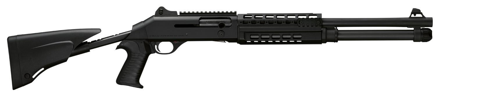 | Benelli M4 Super 90 - Für’s Extreme. Absolut korrosionsbeständig und zuverlässig selbst unter den widrigsten Bedingungen - Oberflächen mit antireflektierender MILSPEC-Beschichtung. Der Lauf innen ist hart verchromt und die Oberflächen phosphatiert. Im Gegensatz zur M3 arbeitet die M4 nicht als Rückstoß sondern als Gasdrucklader. Schaft aus spezieller Aluminium-Legierung, Ghost-Ring-Visierung mit verstellbarem Diopter, Picatinny-Schiene. Lauflänge 18,5 Zoll bzw. 47 cm. Mit Mobilchoke (Wechselchokeeinrichtung). Röhrenmagazin für 6 Patronen. Extreme robust und zuverlässig. Eingeführt im US Marine Corps. Ghostringvisier mit Büchsenkorn und zusätzlicher Weaver- bzw. Picatinnyschiene. M4 Flinte auch lieferbar mit festem Hinterschaftschaft. | |||||||||